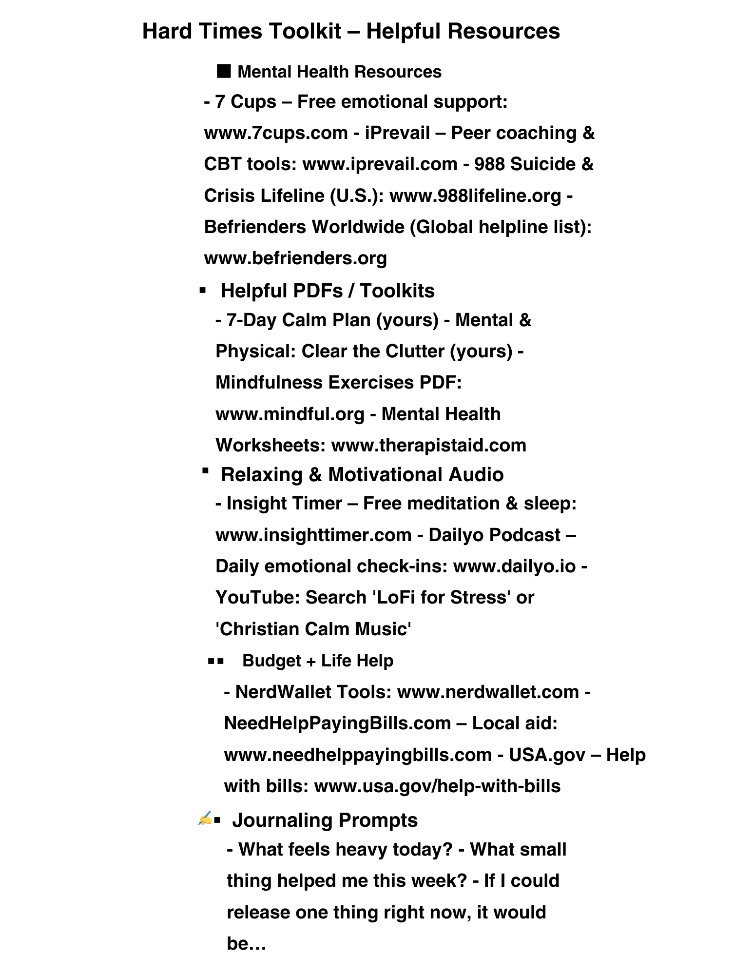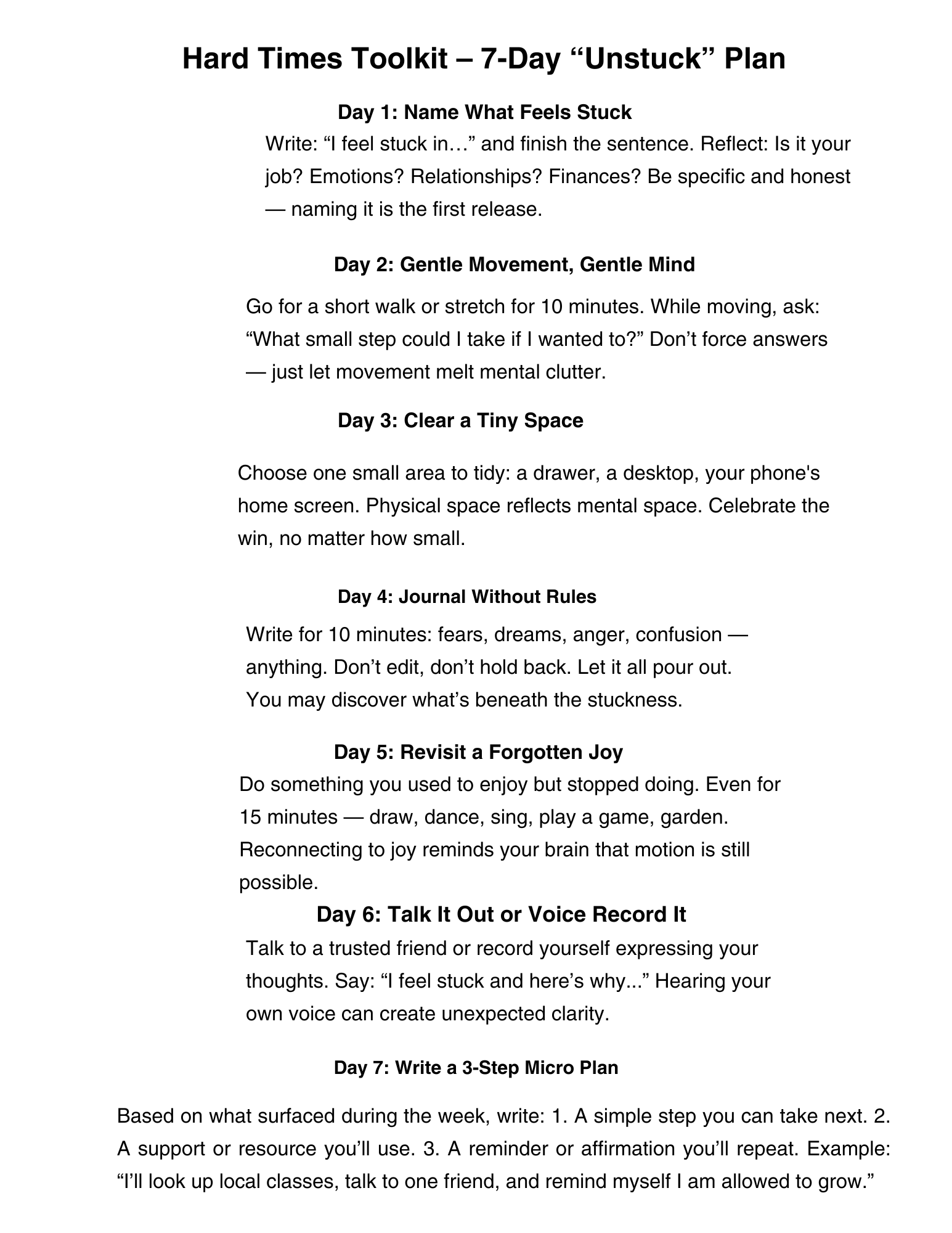 Thanks to the Hard Times Toolkit, I was able to regain my confidence and take actionable steps toward a brighter future.