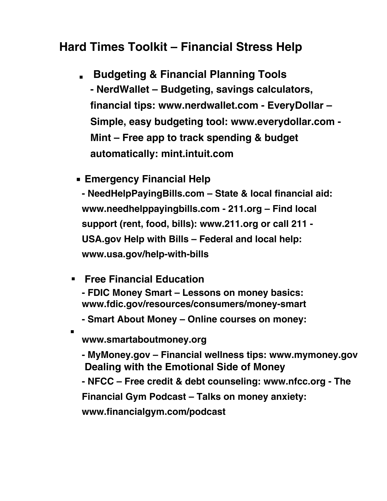 The Hard Times Toolkit gave me the hope and direction I needed during my darkest financial struggles.